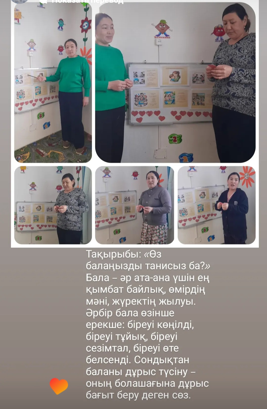 Іс-шара барысында тәрбиеші Миранбекова С.Б отбасы – баланың тұлғалық қалыптасуының алғашқы және маңызды ортасы екенін атай отырып, ата-ананың бала тәрбиесіндегі рөлі, оның эмоциялық дамуына ықпалы, отбасы ішіндегі сыйластық пен түсіністіктің маңызы туралы мазмұнды ақпарат берді.